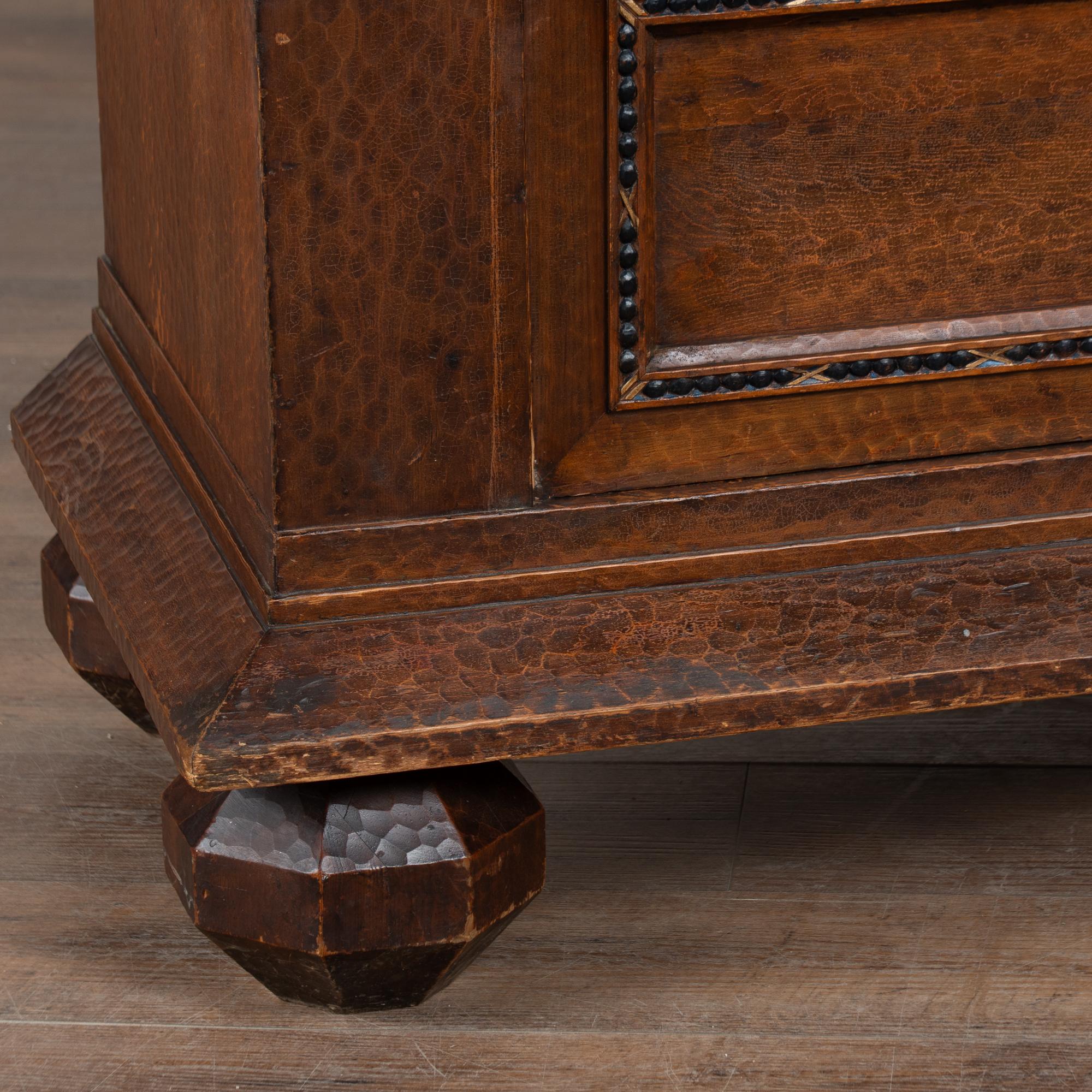 Restored, strong, and stable, this cabinet is ready for use and stands as a dramatic example of Scandinavian folk craftsmanship. Age related dings, scuffs, scratches are seen throughout and reflect generations of use.