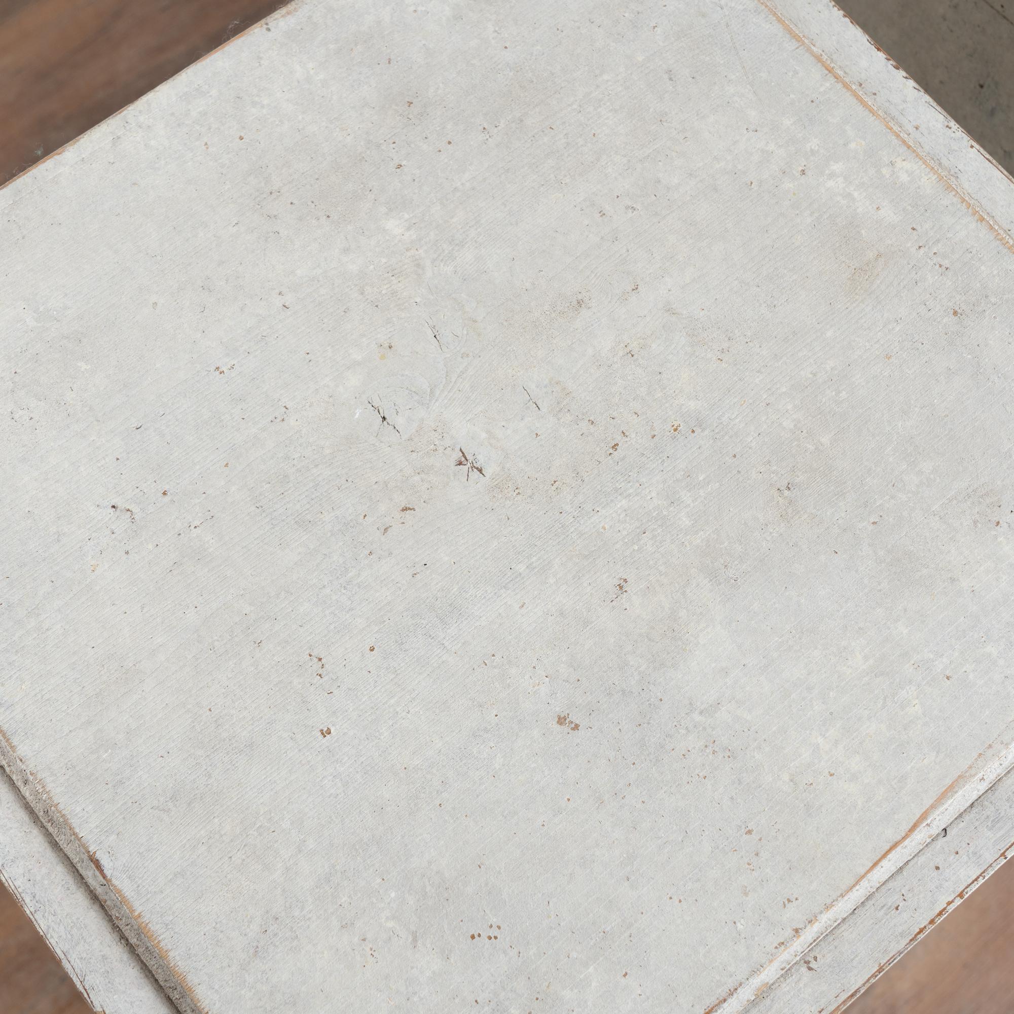 Scratches, nicks, and age-related cracks are visible beneath the painted surface, consistent with long use. The pair has been restored, is strong and stable, and is ready for use, offering classic Gustavian elegance in a compact form.
