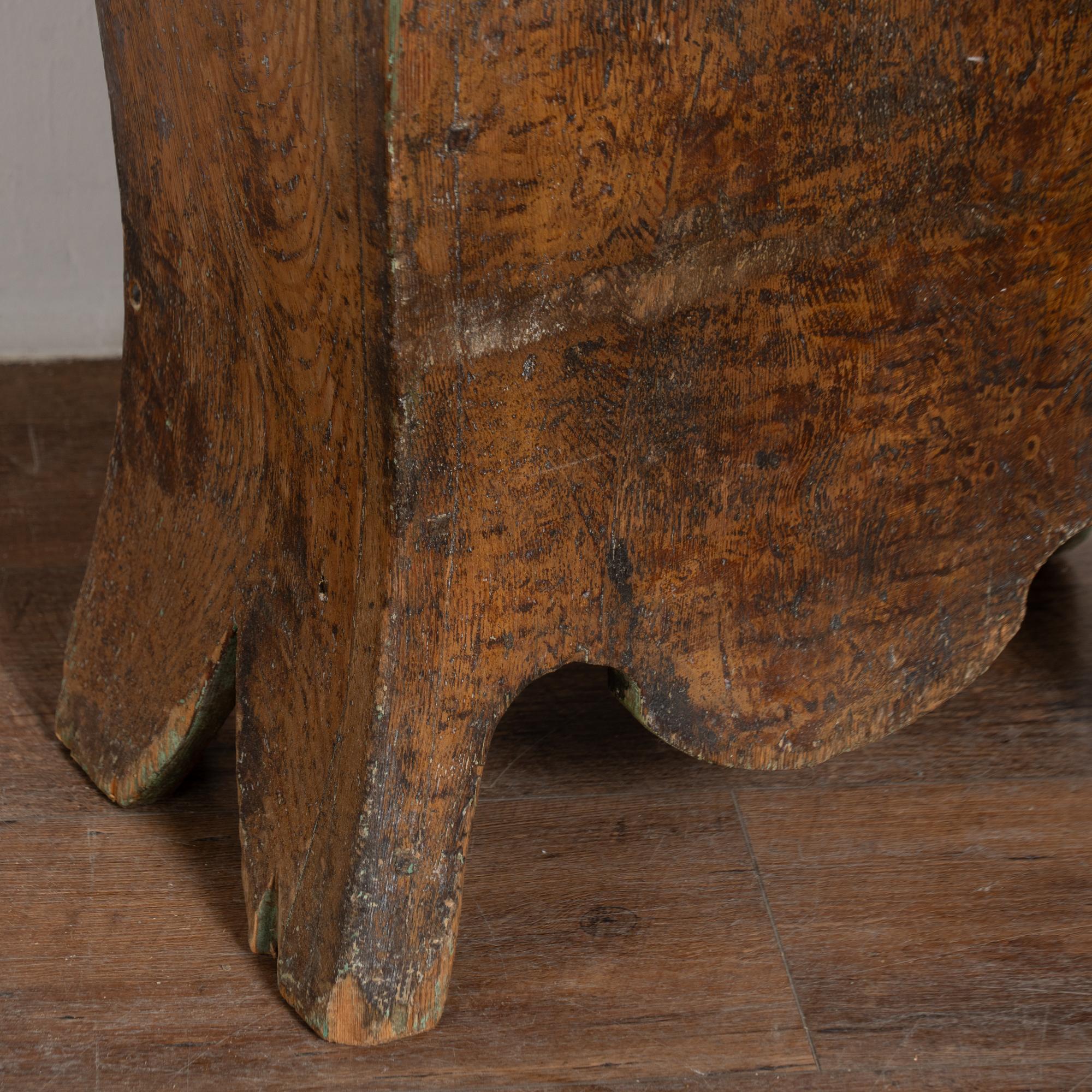 The exterior shows much age-related distress with a deep patina consistent with its age, including typical cracks, scratches, and gouges. Along the side of the lower section there is visible age-related separation that was repaired at an earlier point in time.