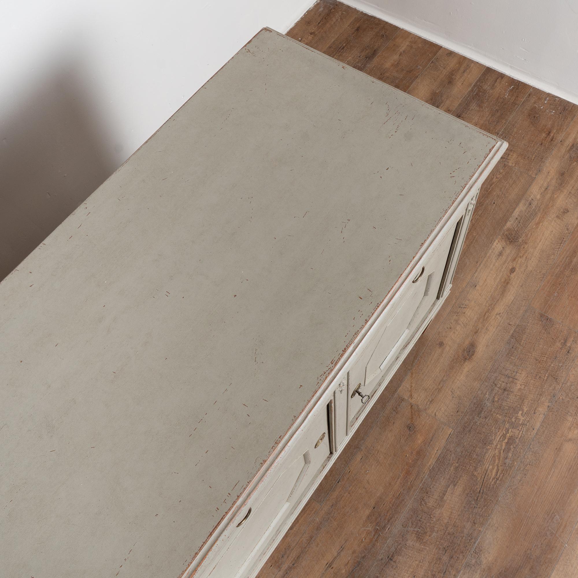 Typical scratches and minor cracks are present, with additional wear and heavier distress noted along the back, including signs of old dried wormhole activity. Keys are present on the bottom doors to use as pulls only; locks no longer function. Restored, strong, stable, and ready to use.