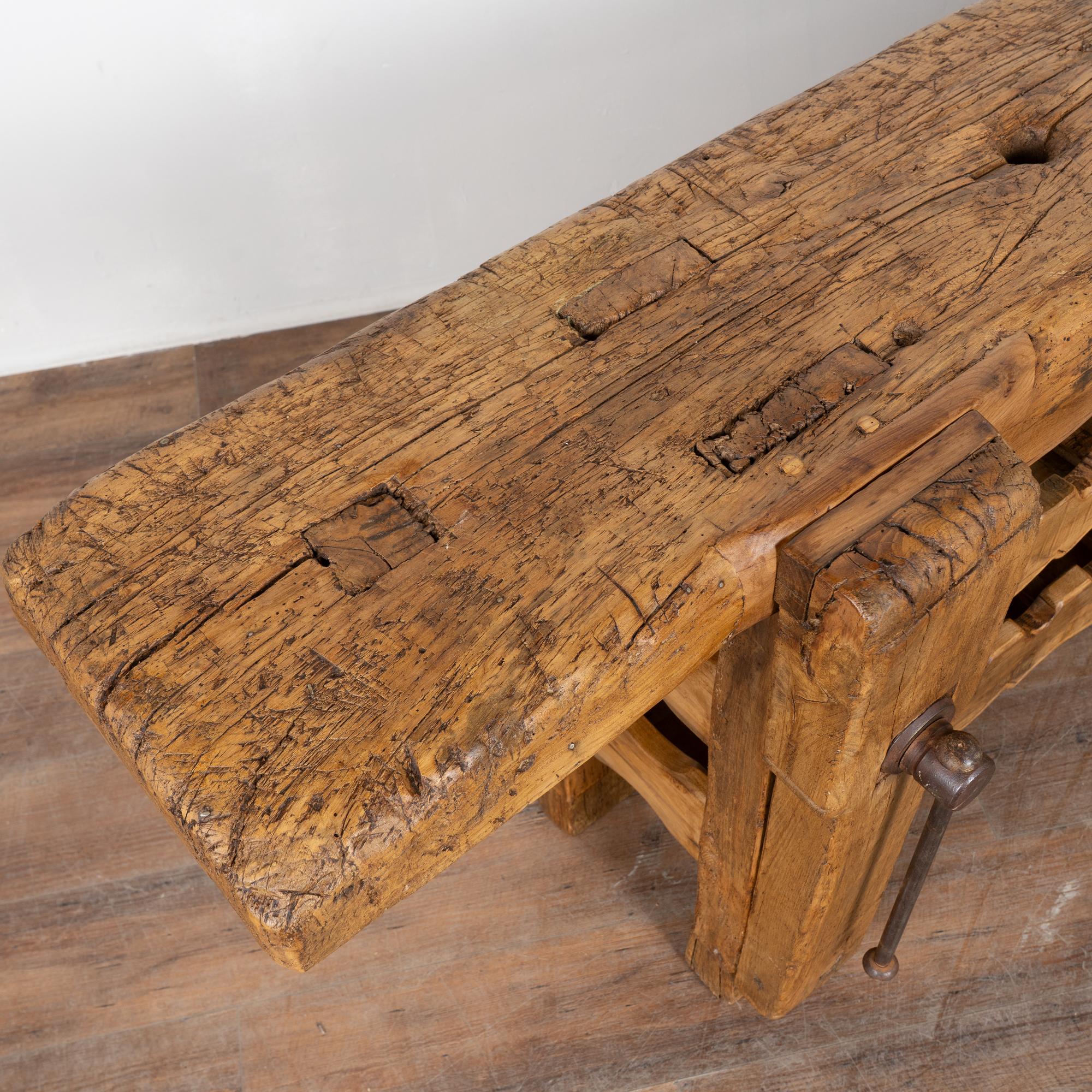 Please examine the close up photos to appreciate the warm patina, joints and old hardware. It has one traditional long vice along the left leg.