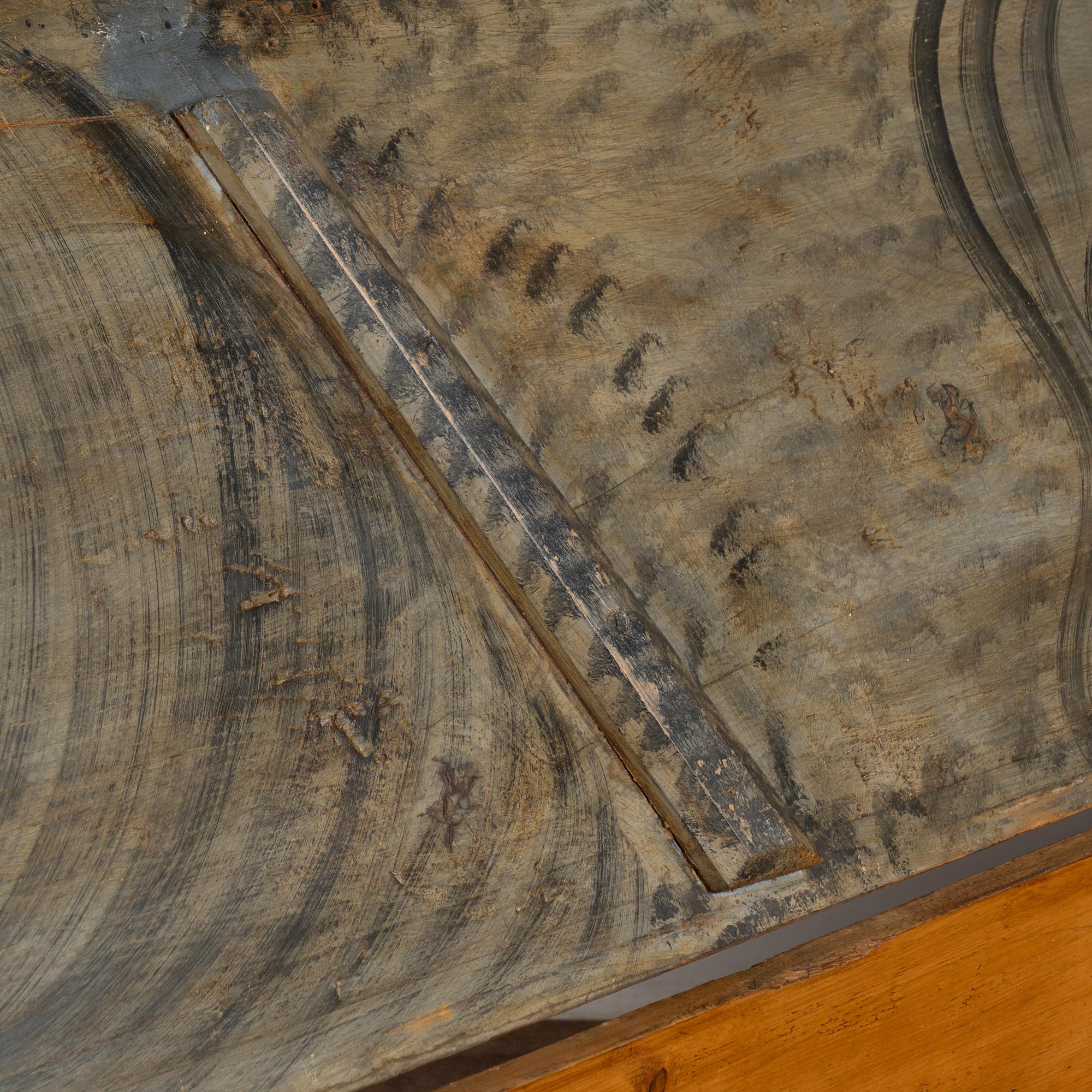 The date of 1889 is seen in the center front painted panel; note the scalloped skirt as well.