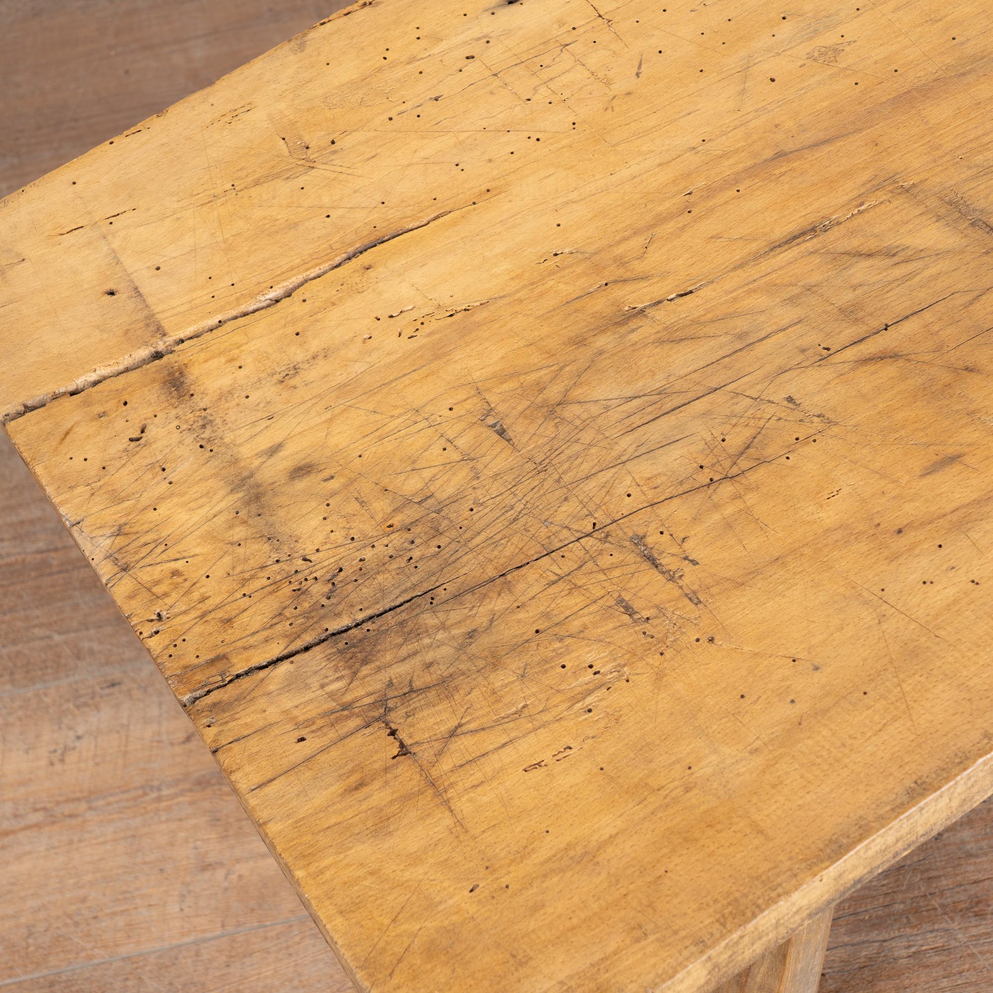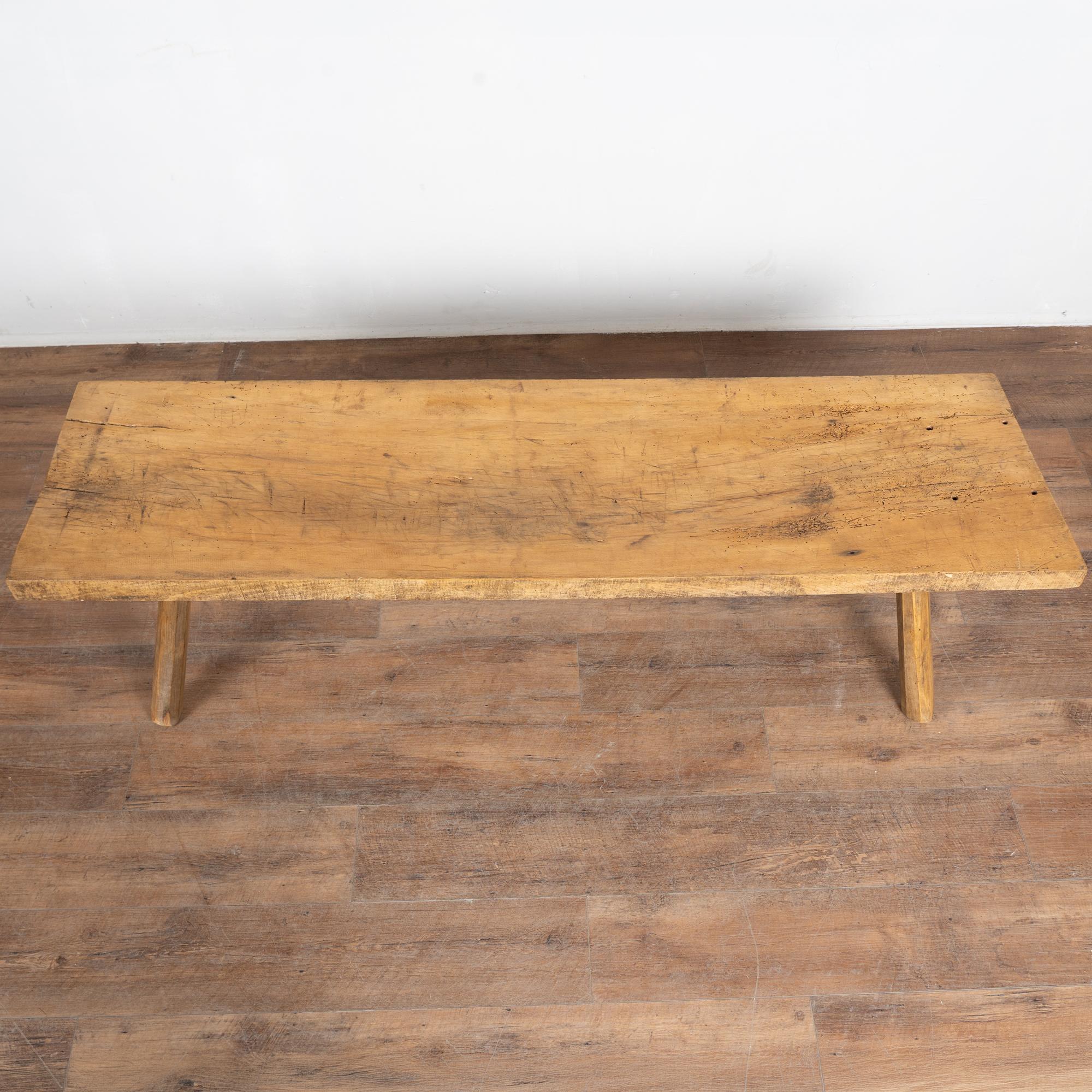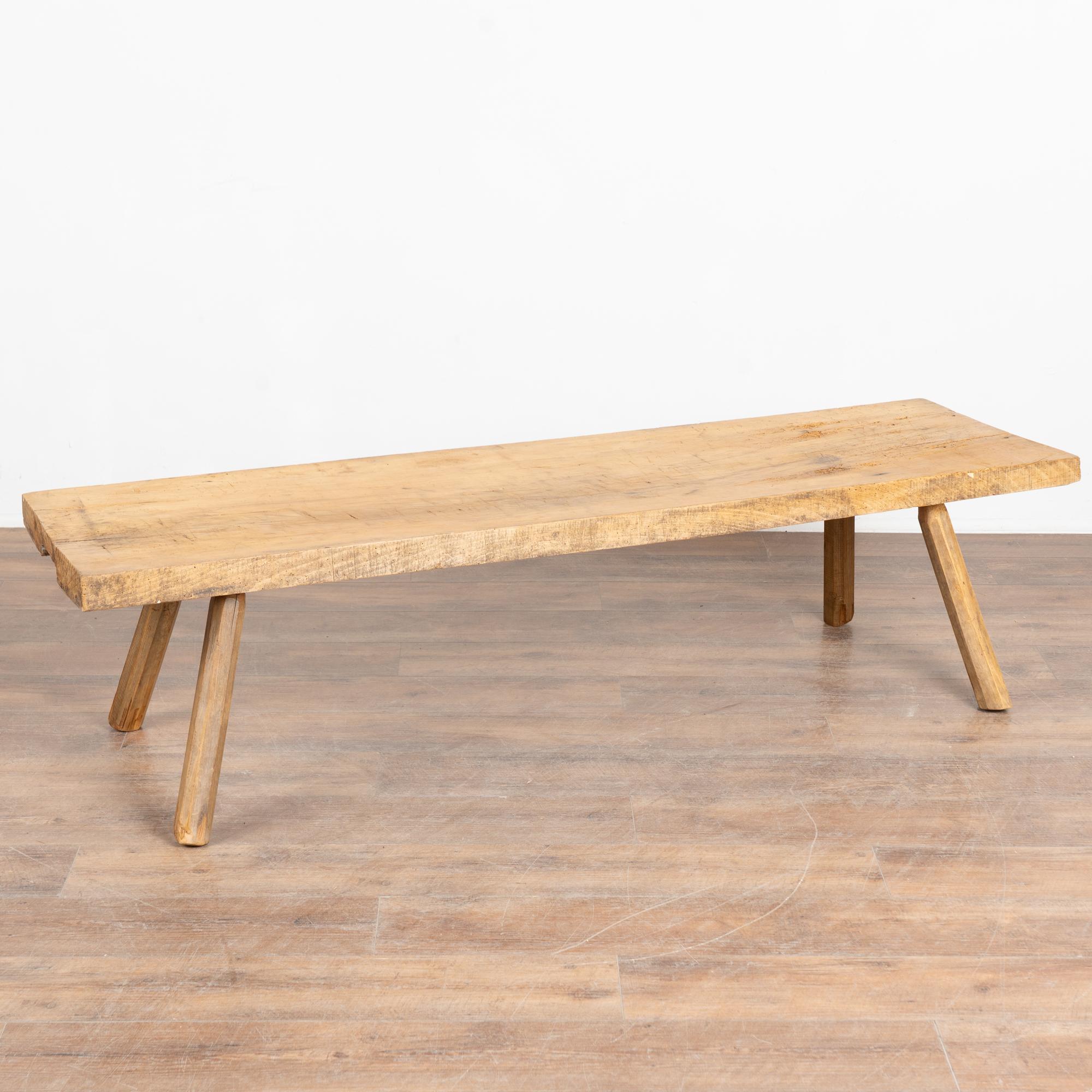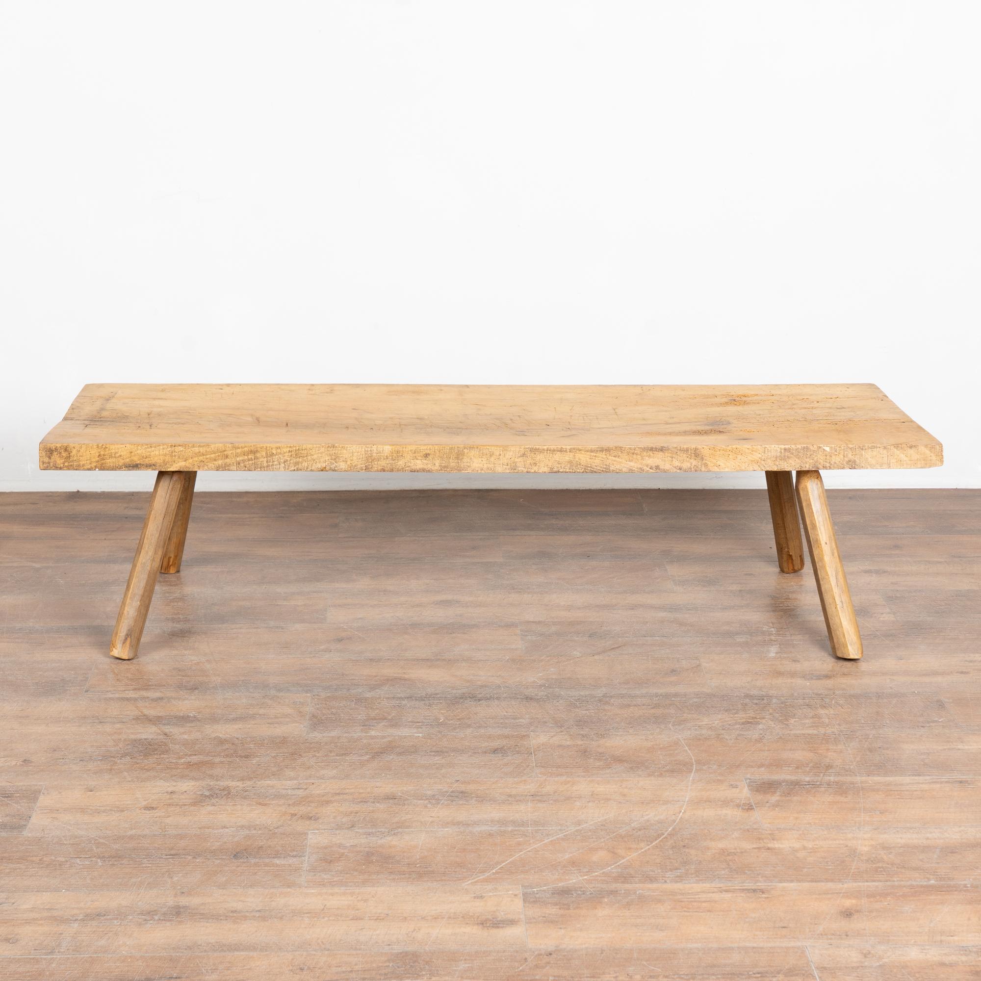 The appeal of this rustic coffee table comes from the thick wood top that originally served as a worktable. The slightly splayed peg legs were a traditional element in this type of table.