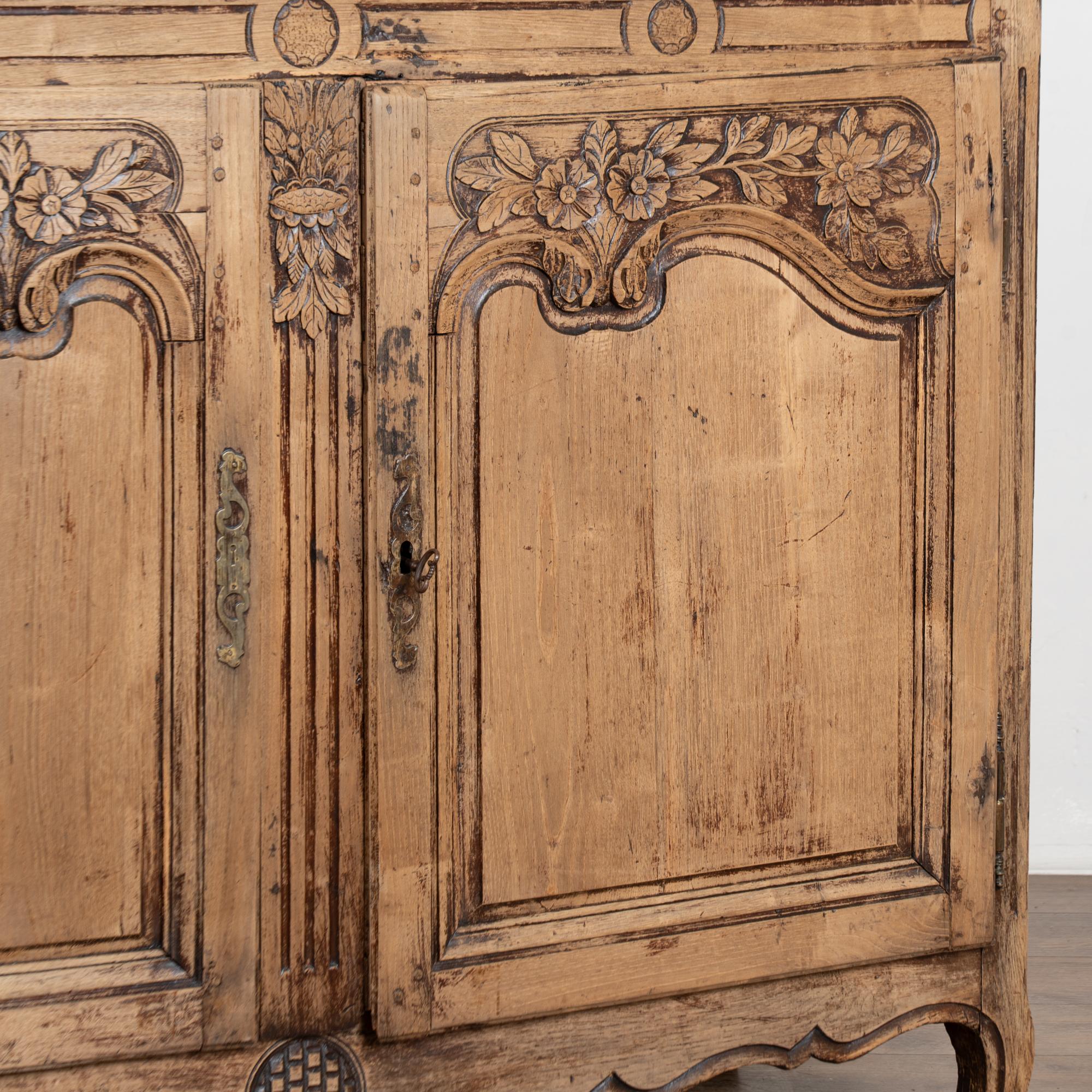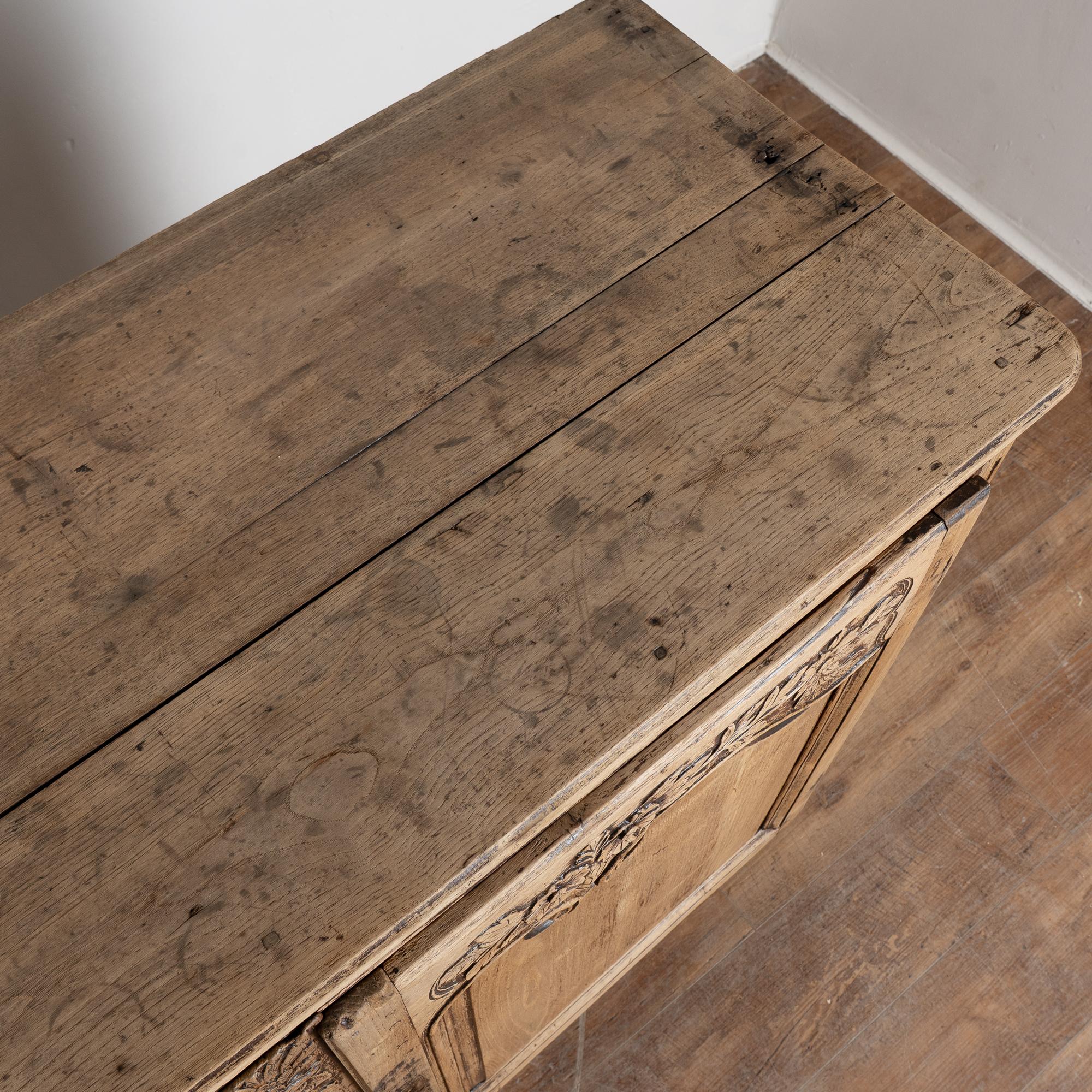 Early 19th century French sideboard crafted in oak and finished with a bleached surface, giving the wood a lighter appearance suited for modern interiors.