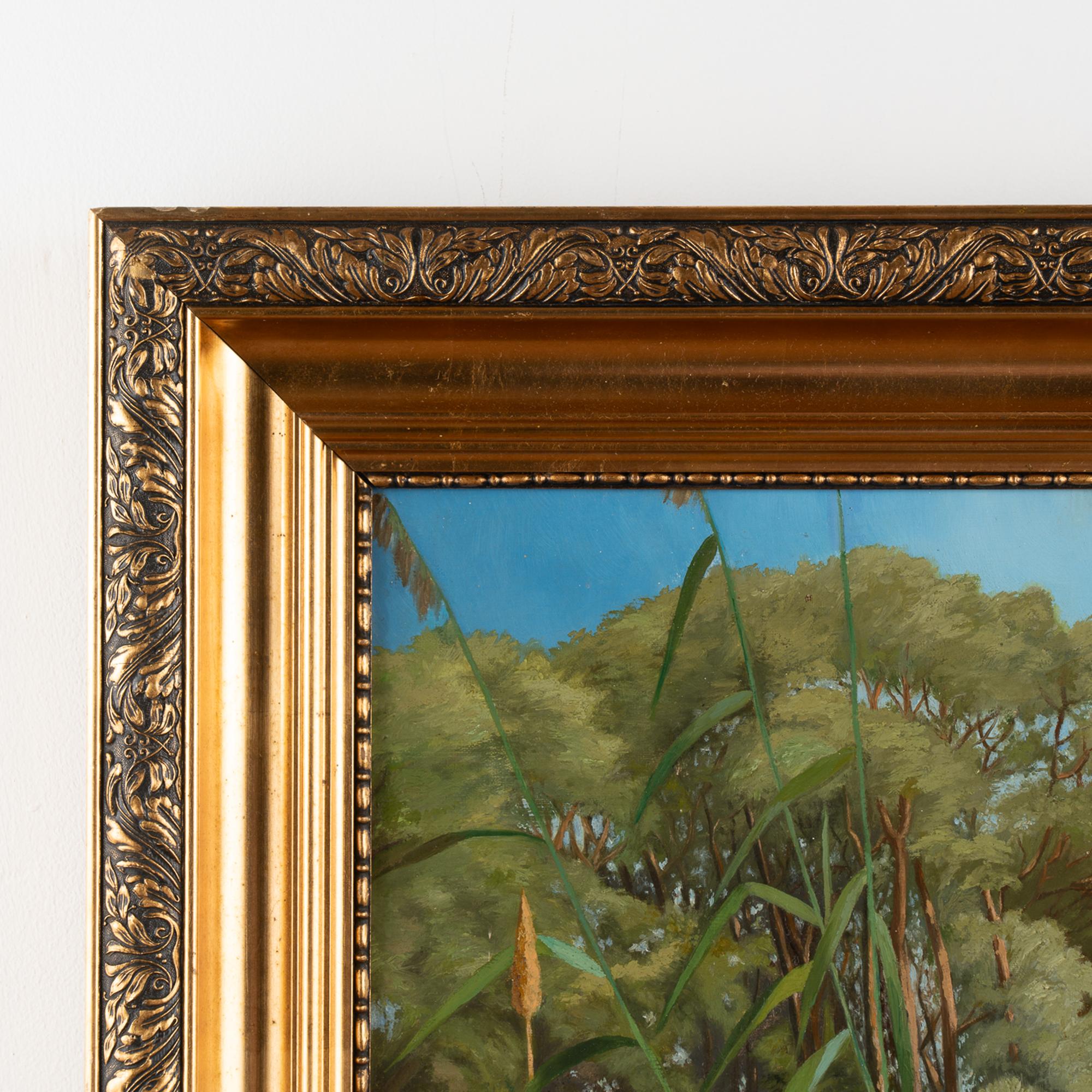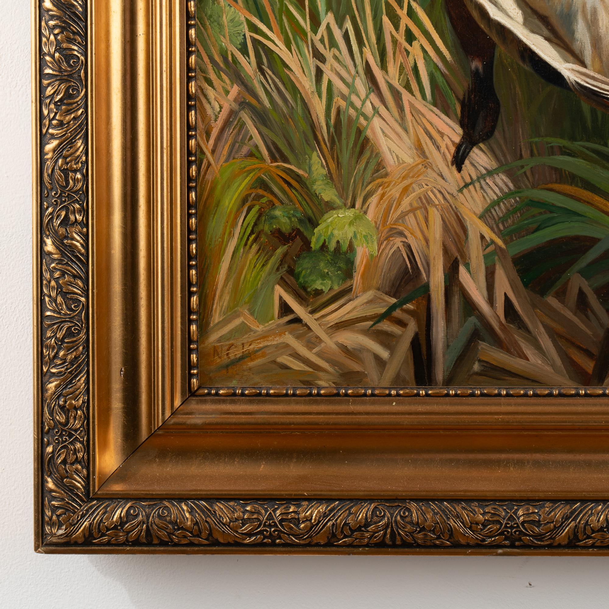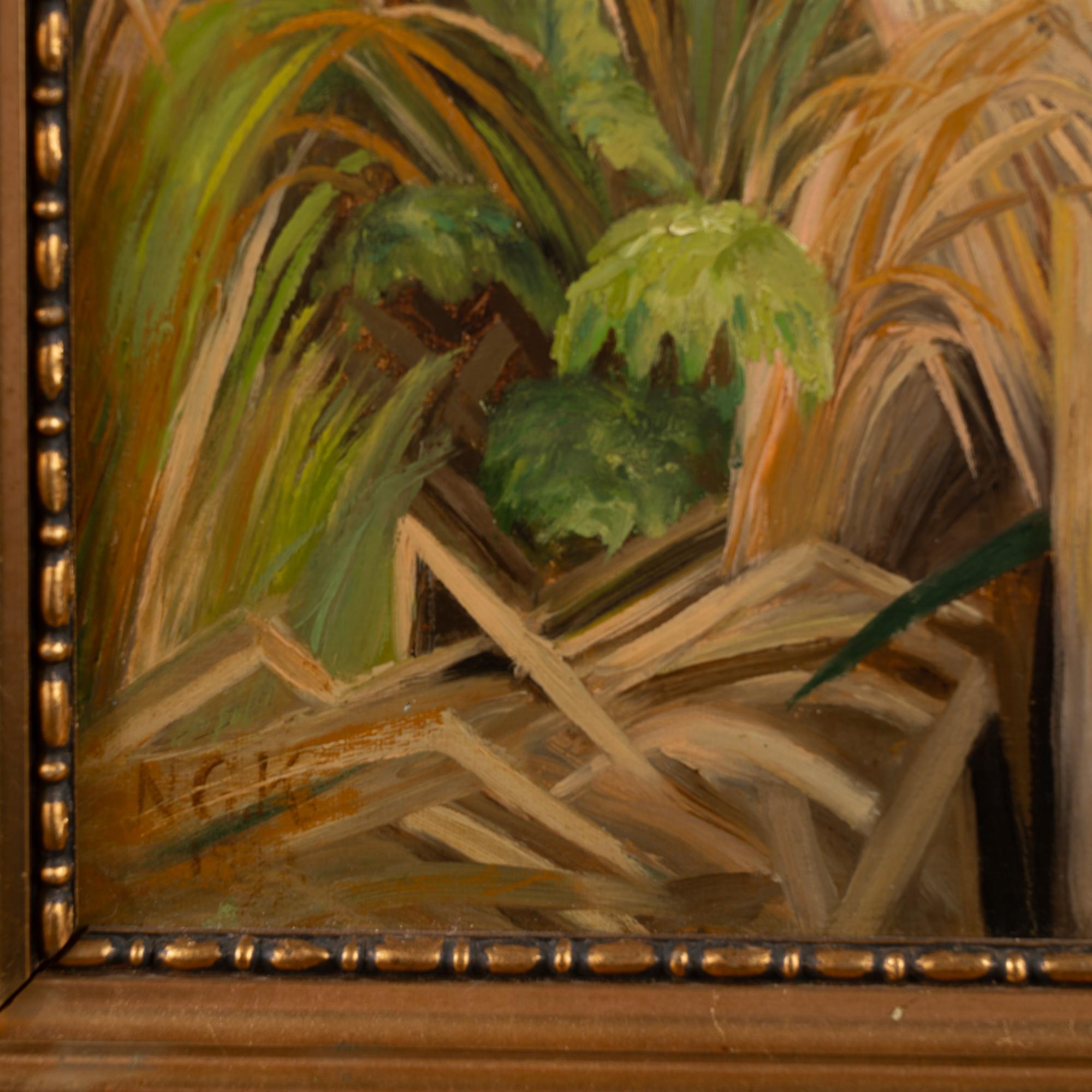 The colors of green, blue, brown and white remain vivid on this painting dated 1899 by unknown artist, signature NGK.