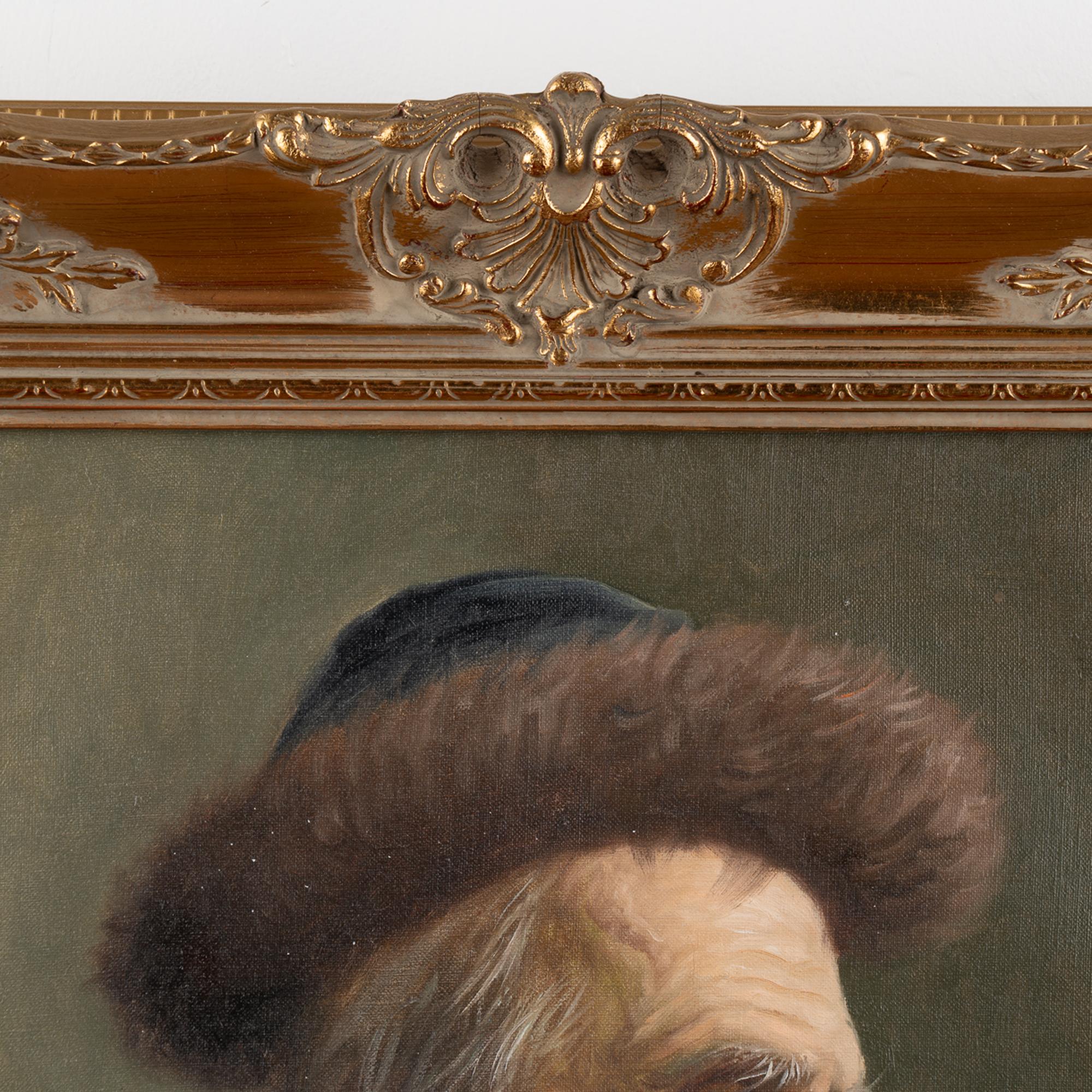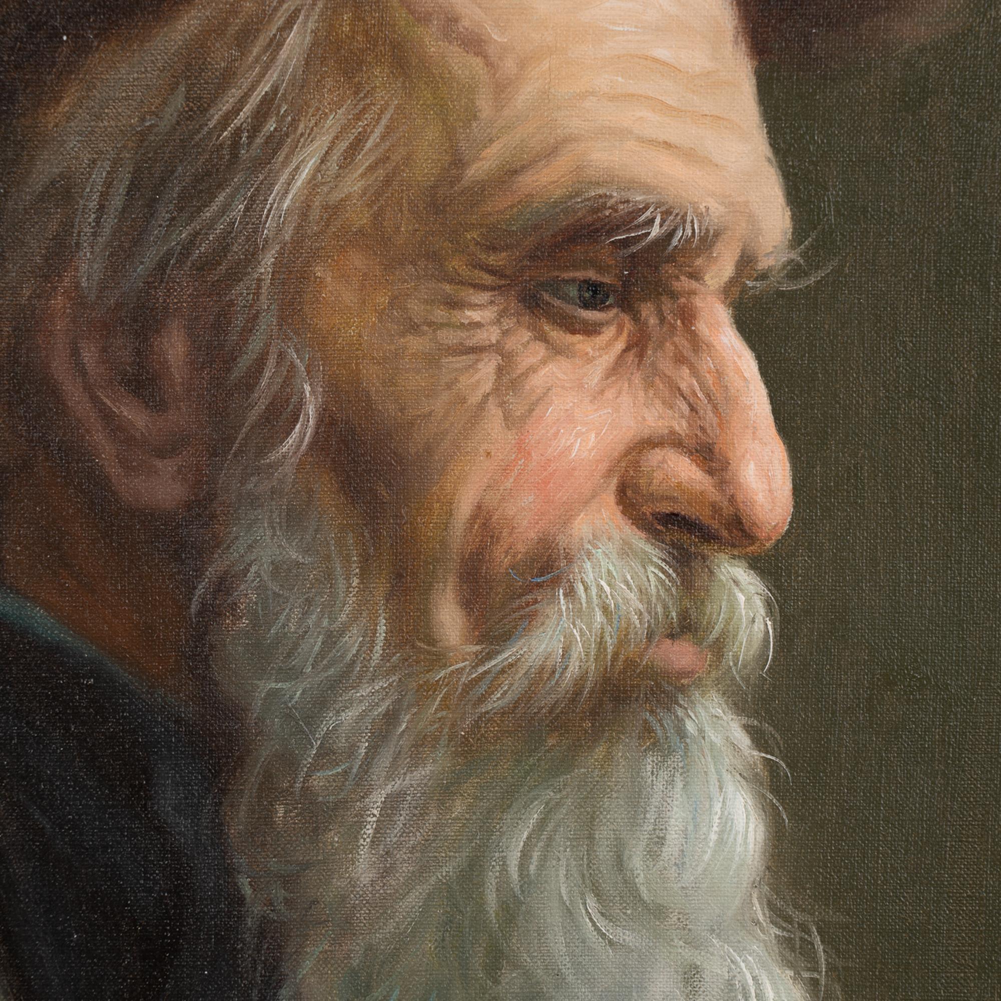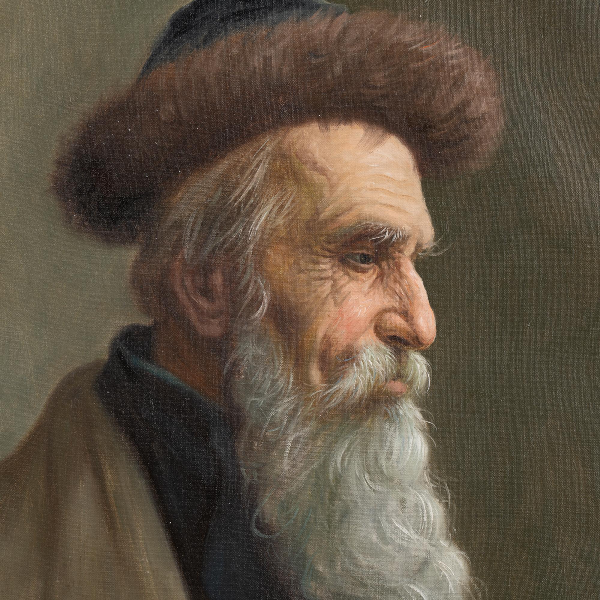 Original oil on canvas portrait of Russian man wearing hat. Signed, unknown artist.