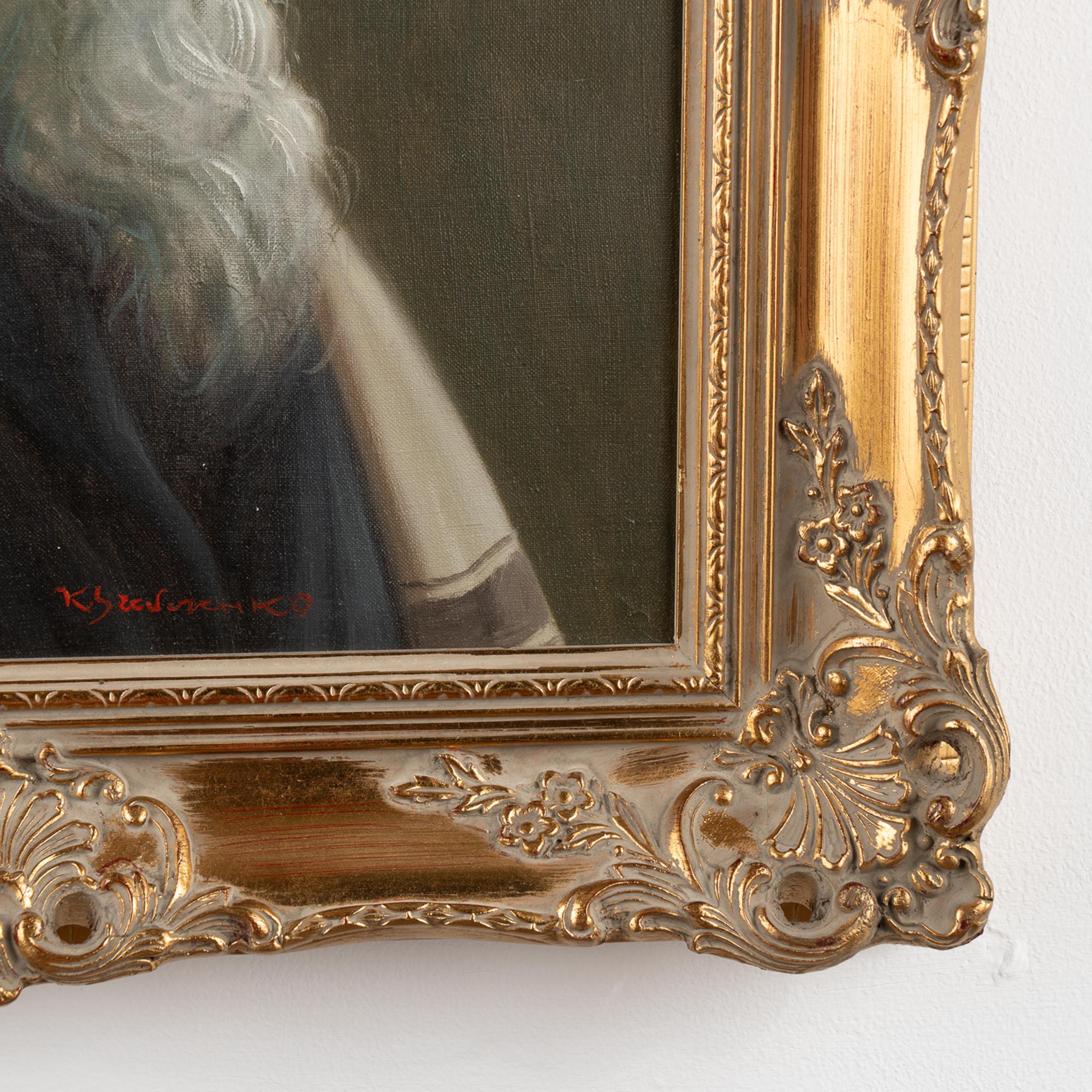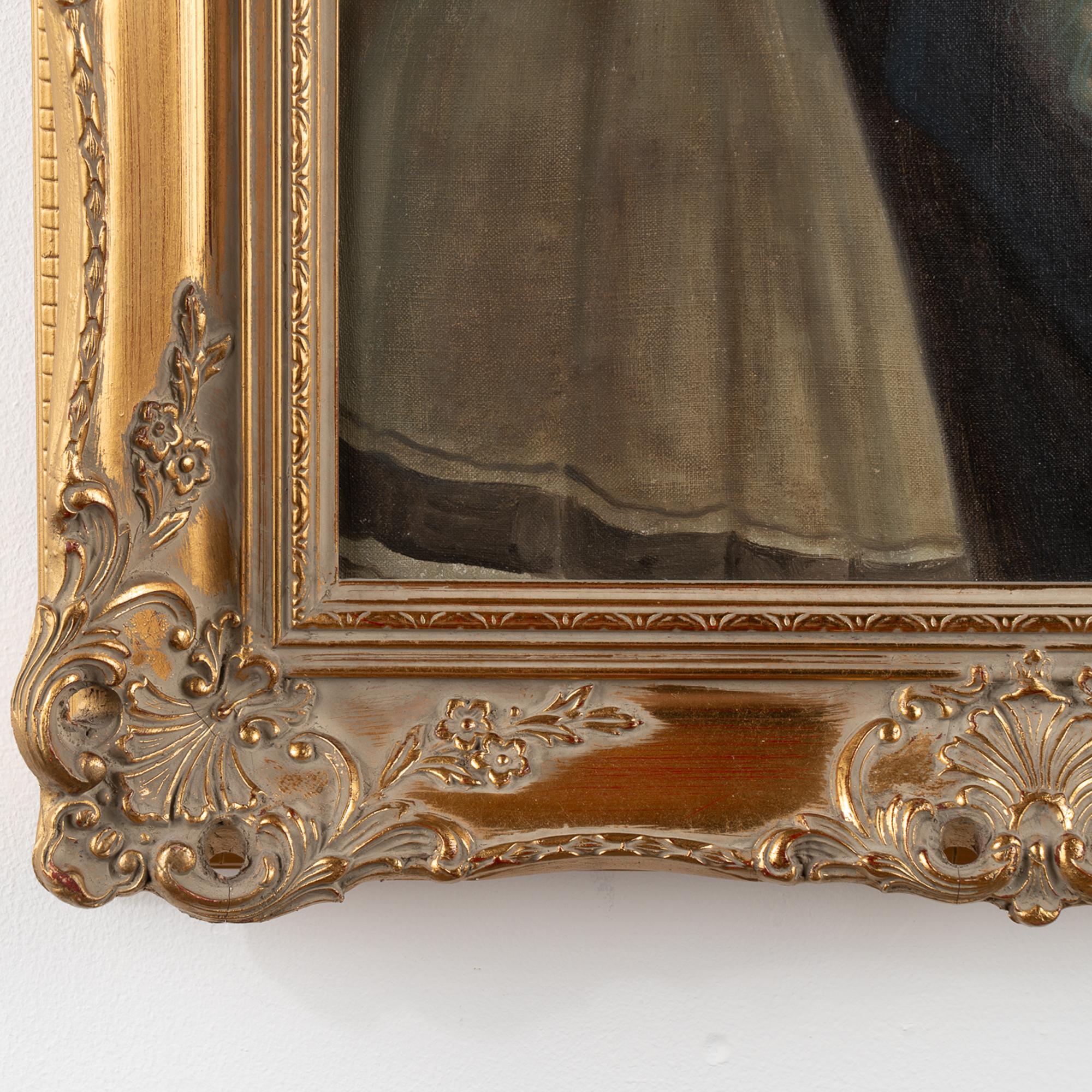 Canvas is in good condition, minor peelings, craquelure, may benefit from light cleaning.