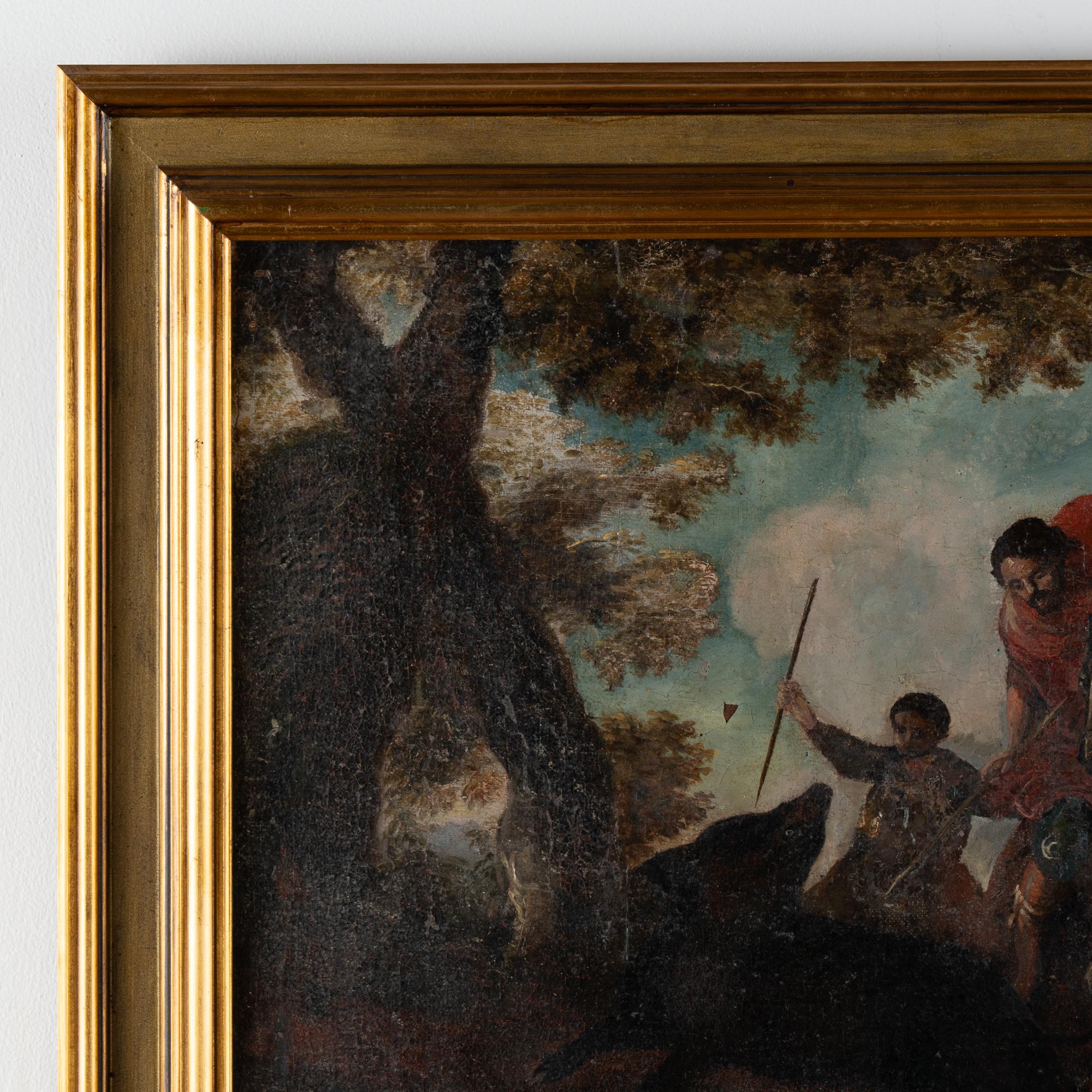 Condition: duplicate canvas, refurbished, stains, retouches, some paint loss (see close up photos). Age related craquelure throughout. Painting will benefit from surface cleaning which we leave to discretion of buyer. Age related nicks, scratches, minor paint loss to frame.