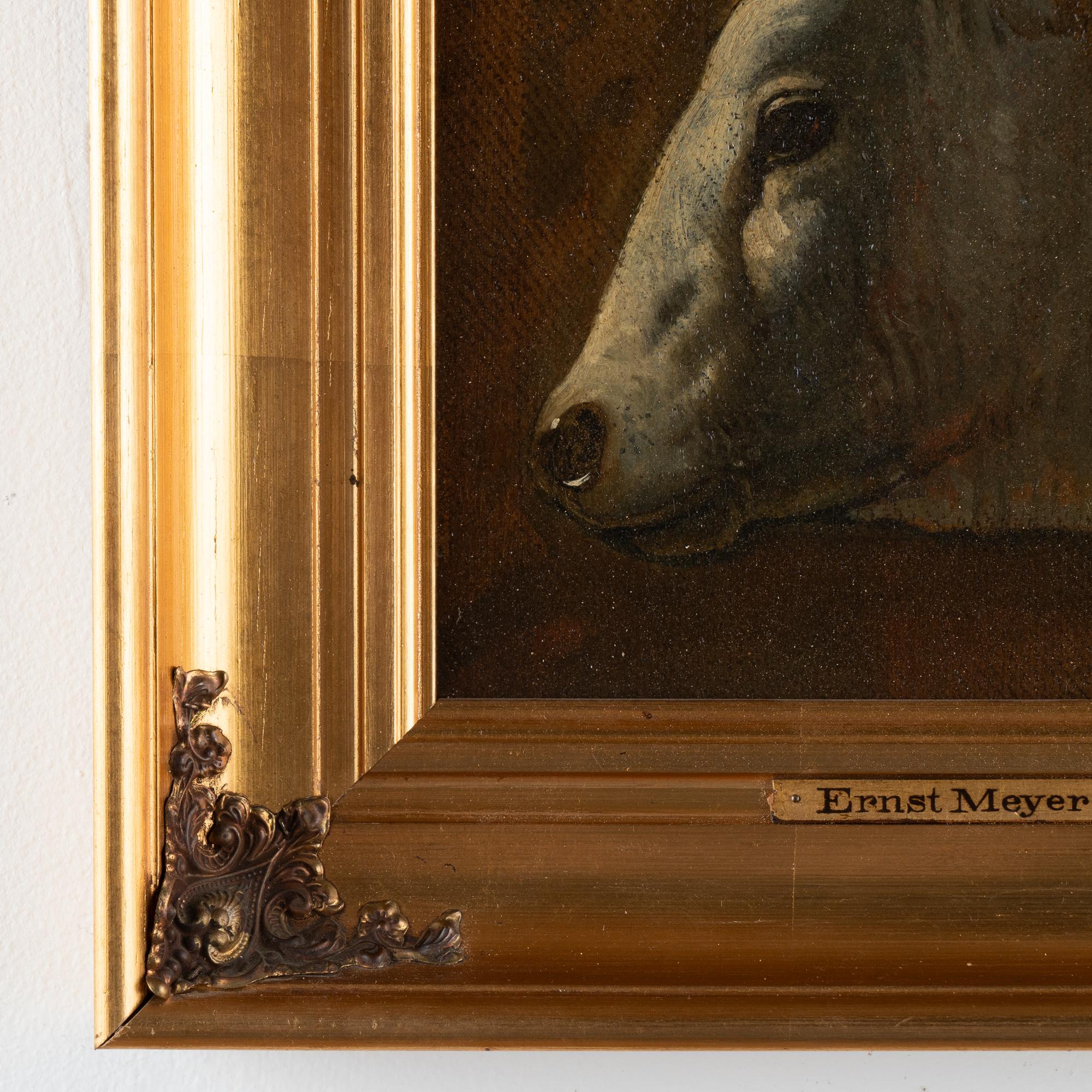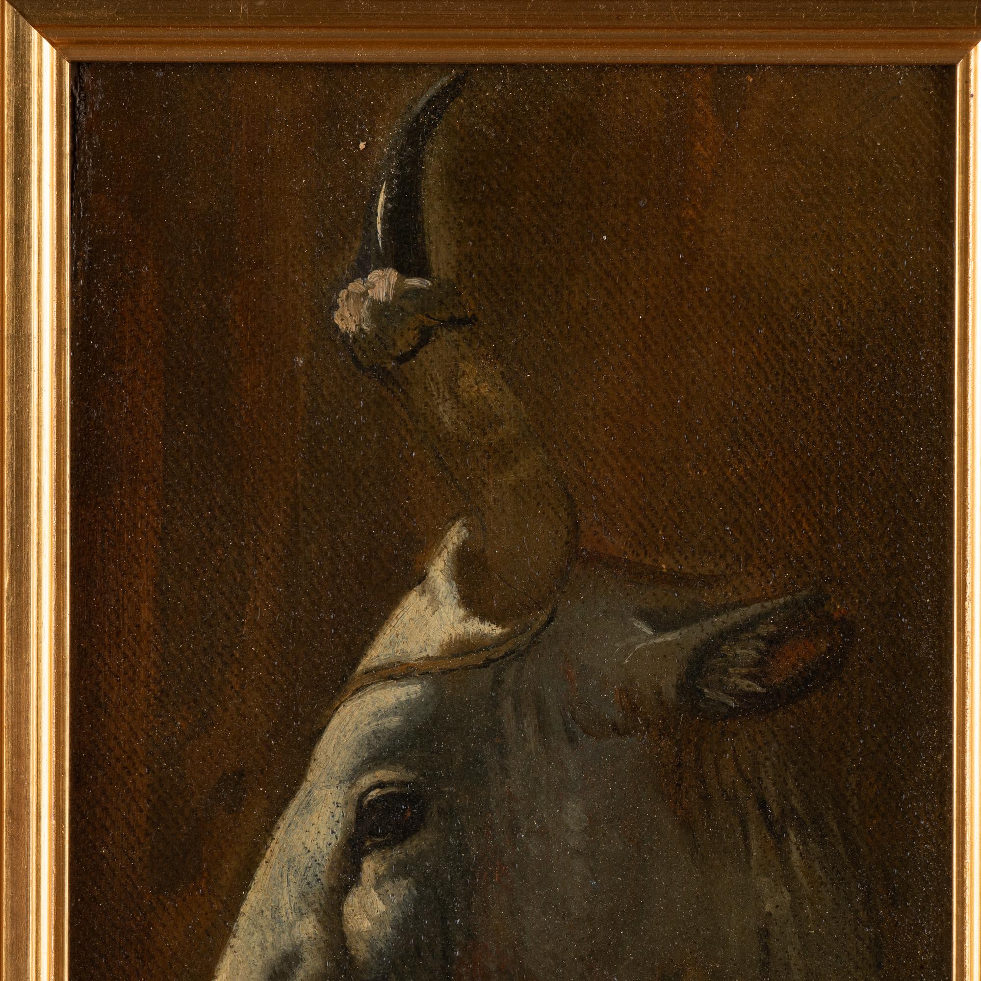 Original oil painting of canvas mounted on board of bull. Danish school, 19th century.